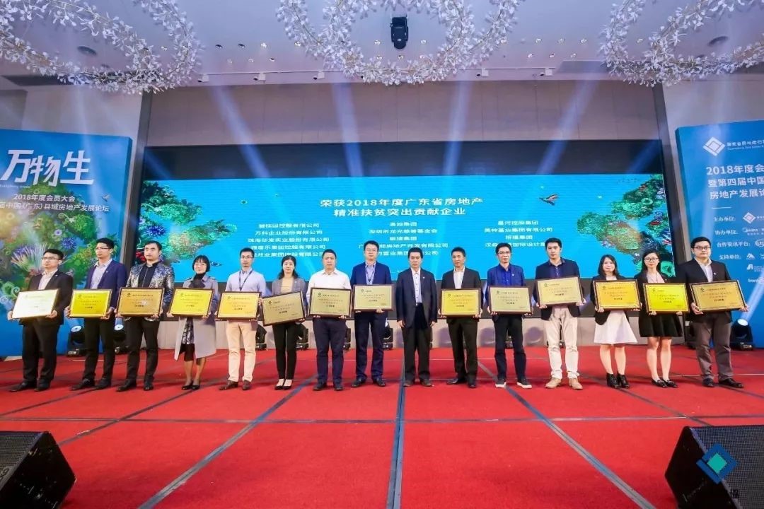 為了深入宣傳房地產(chǎn)企業(yè)履行社會(huì)責(zé)任,積極參與精準(zhǔn)扶貧工作,全面展示全行業(yè)參 與脫貧攻堅(jiān)行動(dòng)取得的重大成就,著力營(yíng)造積極向上的社會(huì)輿論氛圍,廣東 省房地產(chǎn)行業(yè)協(xié)會(huì)對(duì)精準(zhǔn)扶貧有著突出貢獻(xiàn)的企業(yè)進(jìn)行表彰。3月20日晚, 在“致敬中國(guó)改革開(kāi)放40周年晚宴”上,美林基業(yè)集團(tuán)與 碧桂園、萬(wàn)科、雅居樂(lè)、佳兆業(yè)等房企共同獲得“2018年度 廣東房地產(chǎn)企業(yè)精準(zhǔn)扶貧示范獎(jiǎng)”。