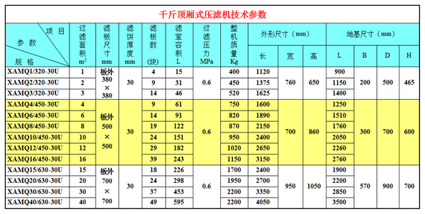 以下為千斤頂廂式壓濾機技術參數(shù)