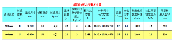 以下為棉餅過濾機(jī)主要技術(shù)參數(shù)