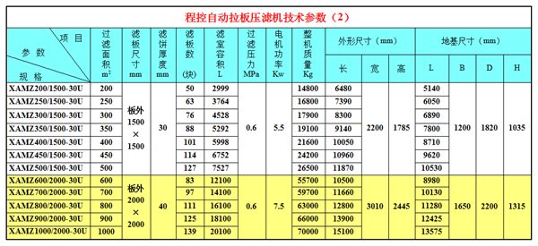 程控自動拉板壓濾機(jī)技術(shù)參數(shù)(2)
