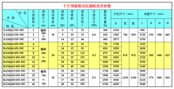 以下為千斤頂板框式壓濾機(jī)技術(shù)參數(shù)