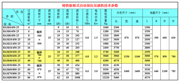 以下為鑄鐵板框式自動保壓壓濾機技術(shù)參數(shù)